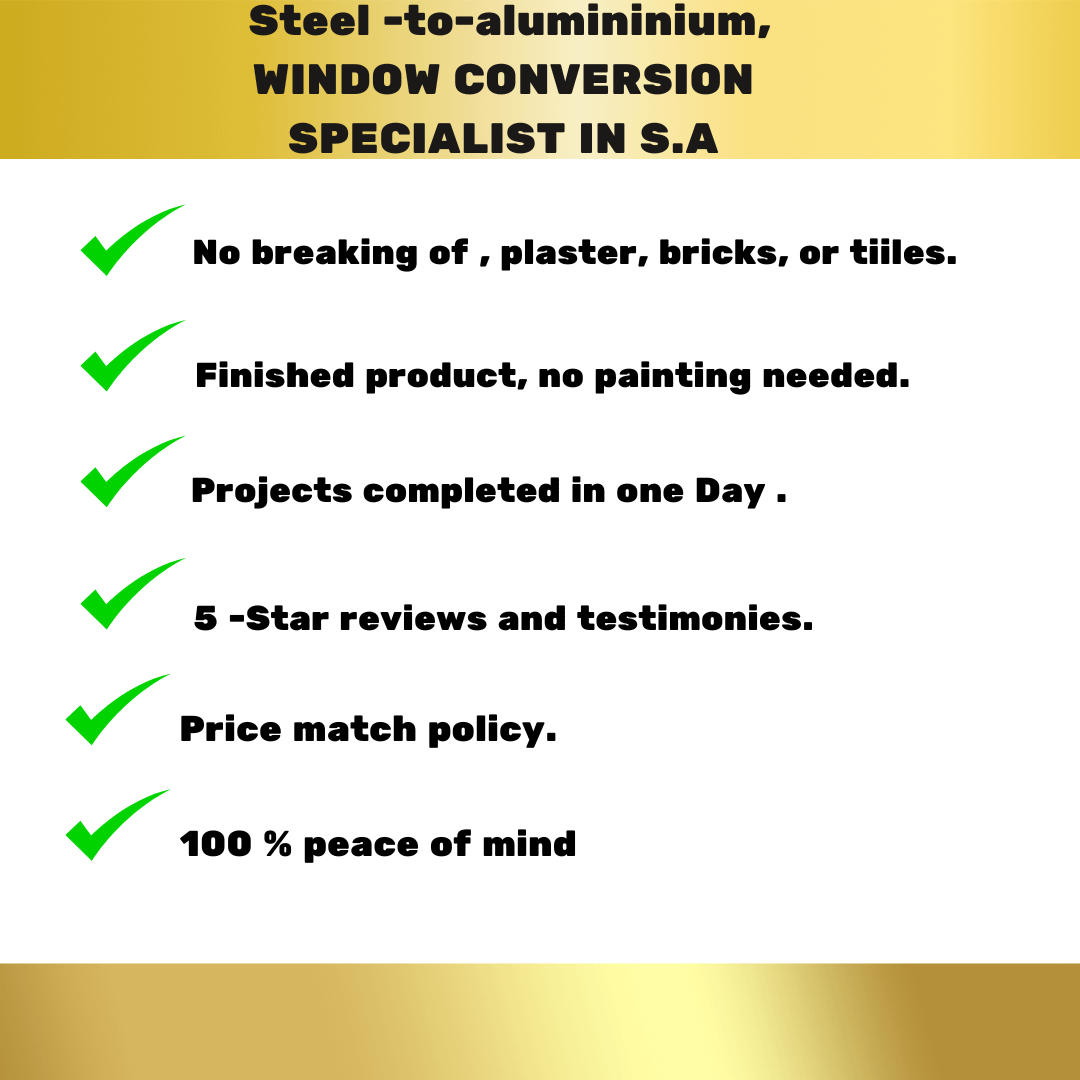 Conversions done in one day, No Breaking of Bricks, tiles, plaster . No Need for painting afterwards!