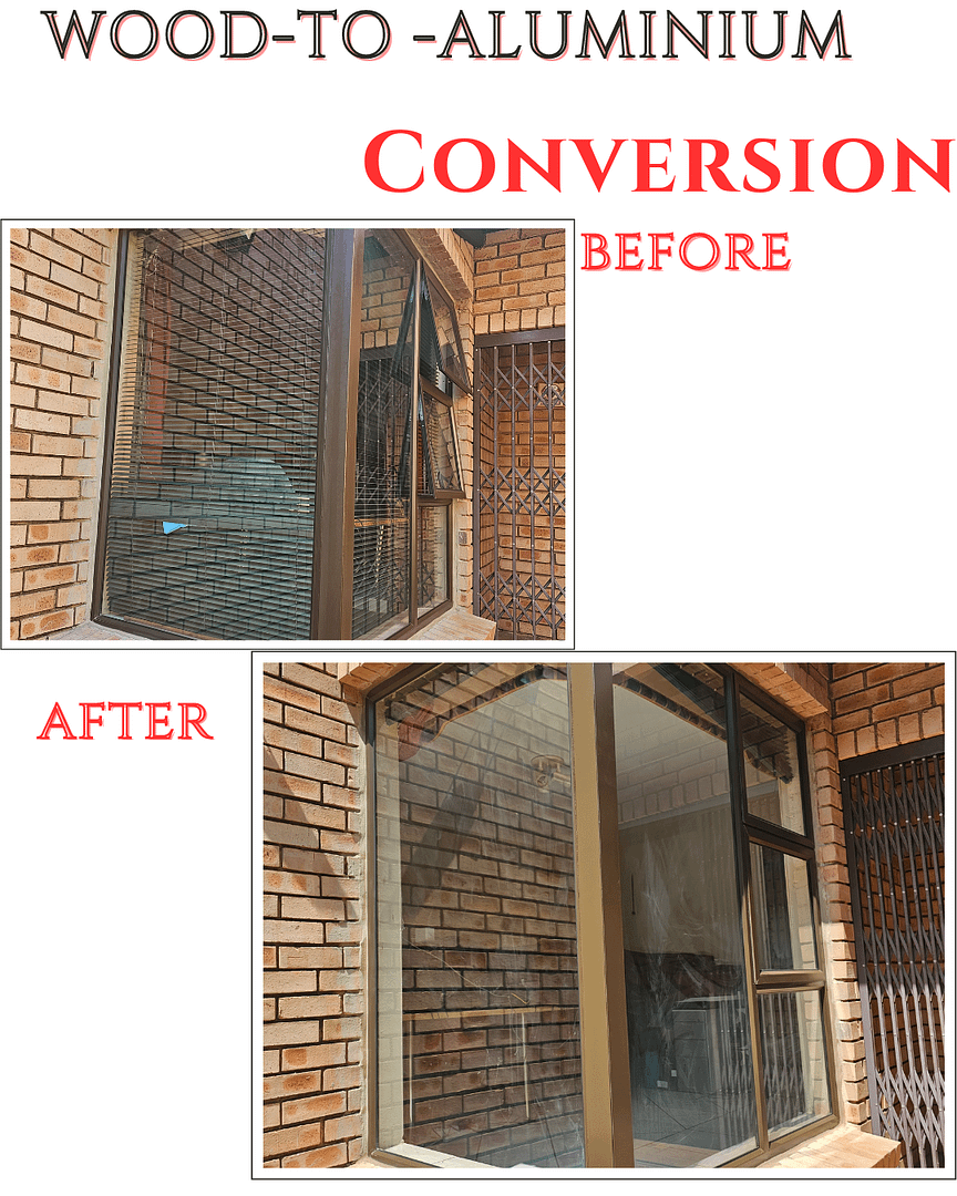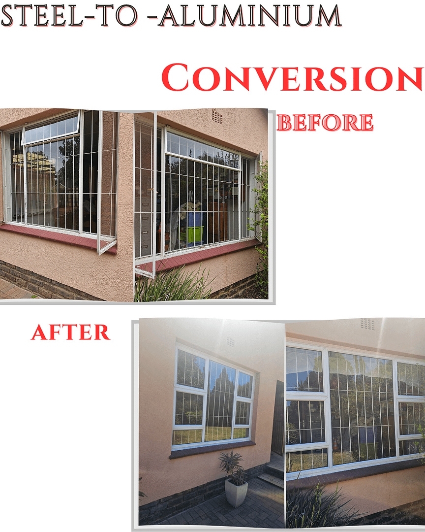 Before and after photos of Steel Windows , replacement with aluminium windows.Done in one day!